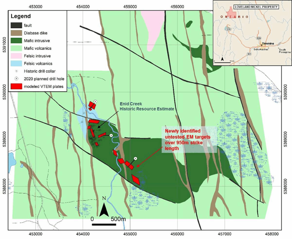 Vancouver, British Columbia–(Newsfile Corp. – February 6, 2020) – North American Nickel Inc. (TSXV: NAN) (OTCBB: WSCRF) (CUSIP: 65704T 108) (the “Company” or “NAN“) is pleased to announce details of its 2020 exploration and drill program on the Loveland Nickel property (“Loveland“) located 30km northwest of Timmins, Ontario. The property is 23.6 km2 in size and has year-round access.