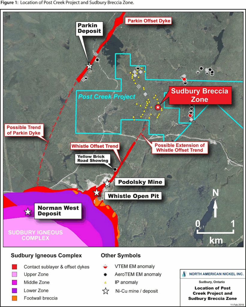 Vancouver, British Columbia–(Newsfile Corp. – February 12, 2019) – North American Nickel Inc. (TSXV: NAN) (OTCQB: WSCRF) (CUSIP: 65704T108) (the “Company”) is pleased to report that assays have been received from two drill holes completed at its Post Creek nickel-copper-PGE sulphide project in Sudbury Ontario.