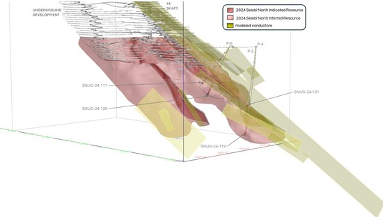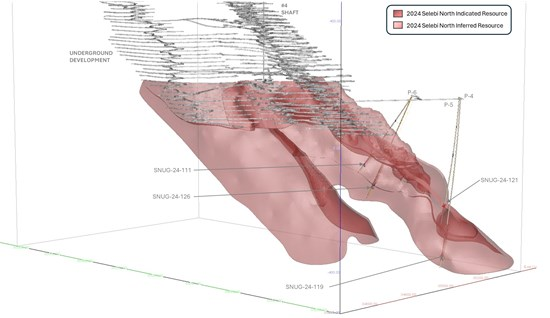True width of mineralization was estimated using the wireframe as part of the Mineral Resource Estimate (see news release dated August 8, 2024). Figures 1 through 3 show the location of the holes relative to the Selebi Mines Mineral Resource Estimate and underground infrastructure.