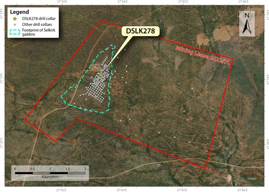 - DSLK278: 139.52 metres grading 0.46% nickel, 0.54% copper, 0.03% cobalt, 0.210 g/t platinum, 0.888 g/t palladium, 0.093 g/t gold, incl.