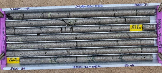 - SNUG-23-025 (South Limb): 9.25 metres of 1.78% NiEq (1.35% Ni; 0.67% Cu; 0.07 % Co)